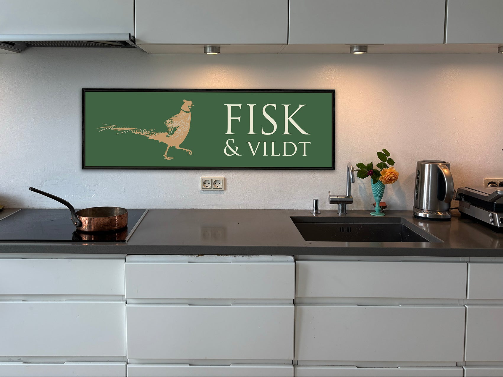 Med inspiration fra en gammel fransk plakat har Peter med sin grafiske baggrund lavet en serie grafiske værker med kærlighed til mad og råvarer. Formatet er aflangt og kan hænge langs køkkenbordet, spisestuen eller kantinen. Printet på Fine Art Giclée og leveret indrammet i lys eller mørk ramme efter dit valg.