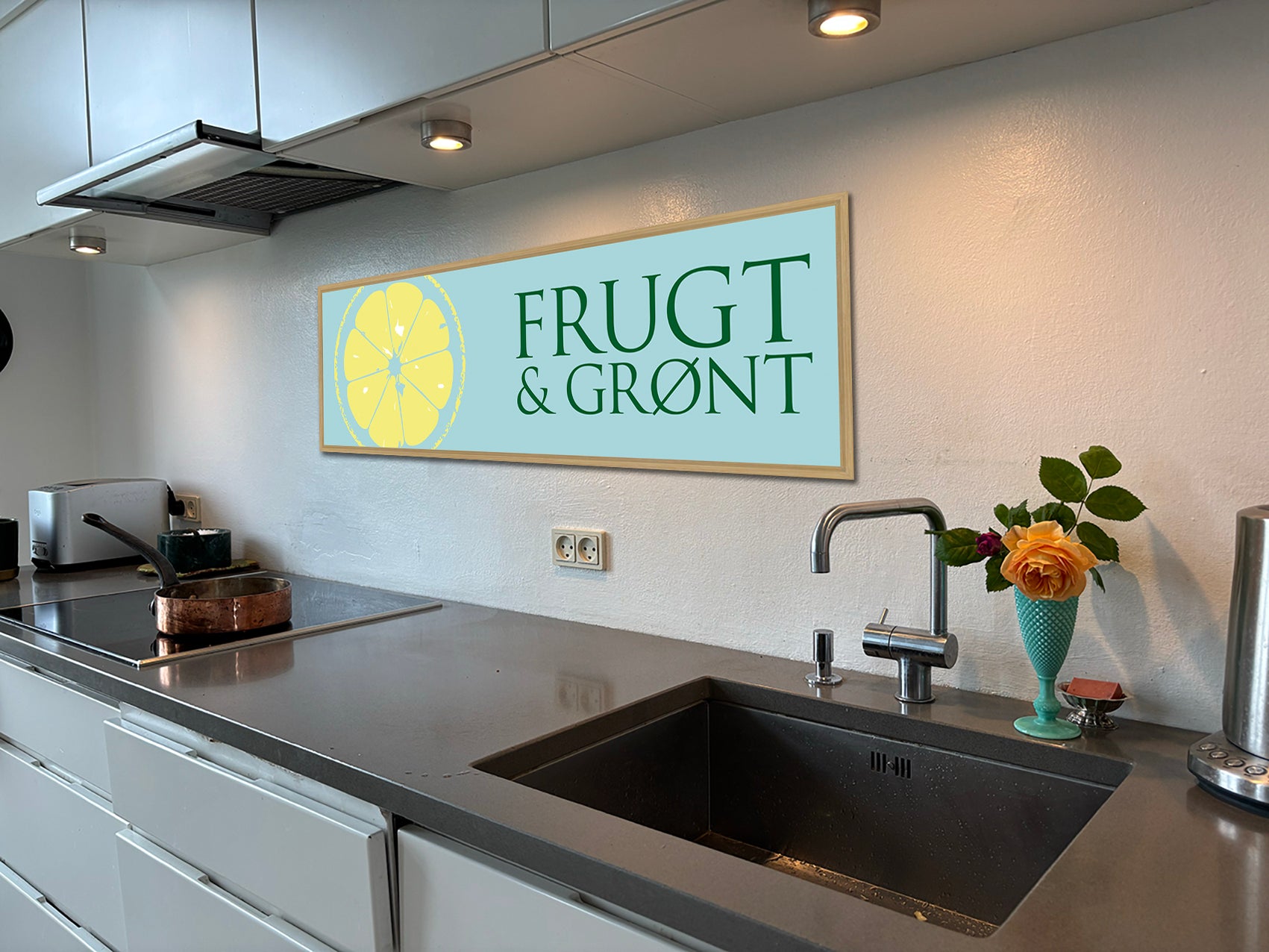 Med inspiration fra en gammel fransk plakat har Peter med sin grafiske baggrund lavet en serie grafiske værker med kærlighed til mad og råvarer. Formatet er aflangt og kan hænge langs køkkenbordet, spisestuen eller kantinen. Printet på Fine Art Giclée og leveret indrammet i lys eller mørk ramme efter dit valg.