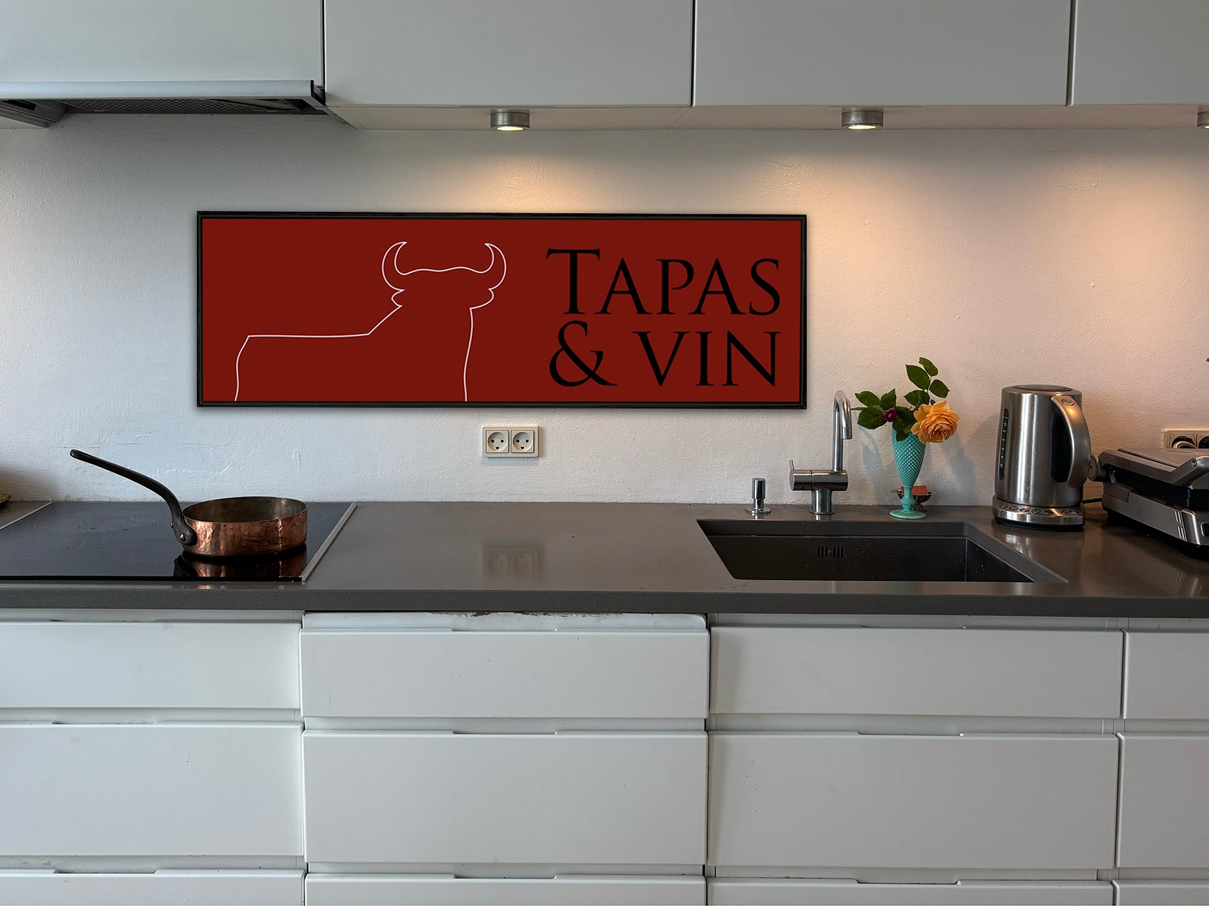Med inspiration fra en gammel fransk plakat har Peter med sin grafiske baggrund lavet en serie grafiske værker med kærlighed til mad og råvarer. Formatet er aflangt og kan hænge langs køkkenbordet, spisestuen eller kantinen. Printet på Fine Art Giclée og leveret indrammet i lys eller mørk ramme efter dit valg.